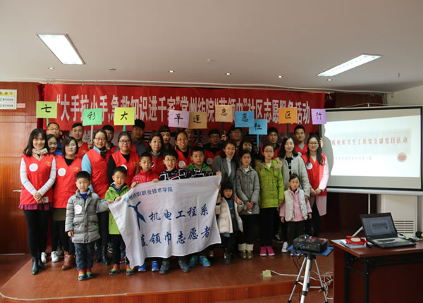 2015年3月机电学院成立了应急志愿服务队,邀请了常州市红十字会及常州龙城救援队的专业人员定期对学生开展系统而严格的培训与考核,迄今支部共有57名学生,4名教师党员获得国家初级急救员证书,具备相对独立的讲解、操作能力。支部多次前往各社区组织开展“党团一家亲,社区志愿行”的志愿服务系列活动。并曾在“一袋牛奶的暴走”、“2017交换卡路里——五四青年暴走公益行”、“滆湖公园万人暴走”等大型公益活动提供救援保障服务。利用所学,服务群众,与社会无缝对接。