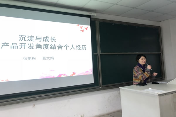 报告会中,纺设专业校友张艳梅、葛文娟分别结合岗位工作,从纺织类产品研发、科研创新、市场调研与推广等方面做了交流汇报,建议同学们不断提升自主学习的能力,严格要求自我,踏实学好各门课程。染整专业校友陈勇虎、董明明结合一线岗位工作经历,谈了工作多年来感受,勉励同学们凡事贵在坚持,切实做到干一行、爱一行,沉淀下来方可成长。