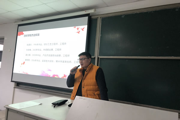 为激发2018级同学的学习动力,让同学们明确未来目标与方向,12月5日下午,纺织学院优秀校友事迹报告会在4A301教室举行,学院2018级各班级学生骨干及入党积极分子参加了报告会。