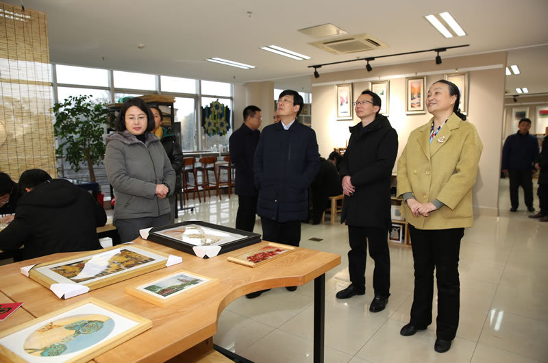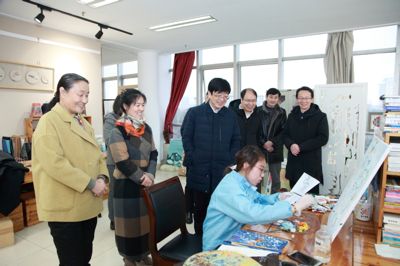 参观考察过程中,谢司长听取了学校领导及相关教师关于专业建设、师资队伍建设、实训基地建设、科技研发、产学融合、人才培养、创意设计、非遗传承等方面的情况介绍,对我校的办学理念和办学特色给予了高度评价,并对我校取得的丰硕办学成果给予充分肯定。当他在与我校师生亲切交流的过程中了解到学生作品在国内、省内获得大奖,很多学生基于所学专业投身创新创业之路时表示称赞。谢司长赞许我校厚德精艺培养人才的育人模式,认为职业教育应该走校企合作、产教融合之路,适应市场要求,引领产业发展。