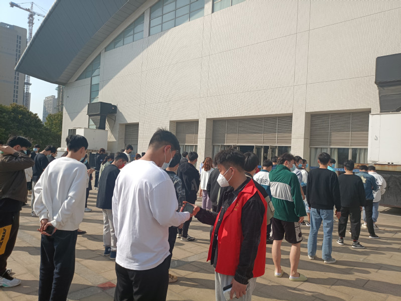 早上6点30分任务一经发布,短短20分钟,就有150余名常纺学子请缨出战,经过筛选,122名“纺小团”志愿者入选组成战“疫”团队,之后利用信息化平台,团委组织全体志愿者进行了志愿服务安全防护培训。中午11点30分,全体志愿者在体育馆接受了学校防疫领导小组、市卫健委常纺院核酸检测工作组统一培训,受训后大家分为3个工作大组,分别奔赴二楼体育馆、七号楼和五号楼三个采样点开展工作。志愿者们以饱满的精神和优质的服务,不间断连续奋战6小时,高质量完成了秩序维持、核酸采样码检查、体温测量、场内引导、扫码登记等工作,配合学校圆满完成了全校师生员工7300余份核酸样本采样工作。