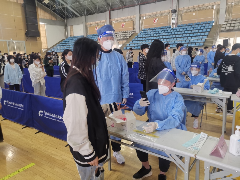 疫情当前,责任在肩;党旗所指,团旗所向,为落实好常州市以及科教城疫情防控部门工作部署,全力做好学校疫情防控工作,3月15日,我校开展了师生全员核酸检测工作。团委、学生会以及红十字会迅速响应,“纺小团”志愿者们冲锋一线,积极配合开展核酸检测志愿服务工作,助力全校师生高效完成核酸检测工作。