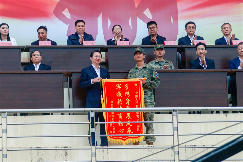 党委副书记、校长洪霄向承训部队赠送锦旗