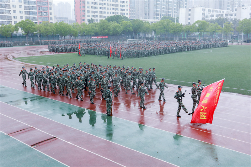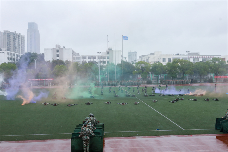 大会的第一项议程是军训成果汇报,由91079部队汪炳舟排长主持。尽管天气不佳,但新生们展现出了极高的纪律性和团队精神。在分列式表演中,他们步伐整齐、口号响亮,充分展示了军训期间的训练成果。分项汇报环节更是精彩纷呈,赢得了在场观众的阵阵掌声。他们的表现,不仅是对军训成果的完美呈现,更是对青春与梦想的最好诠释。