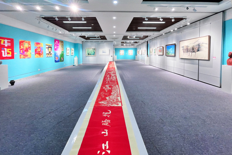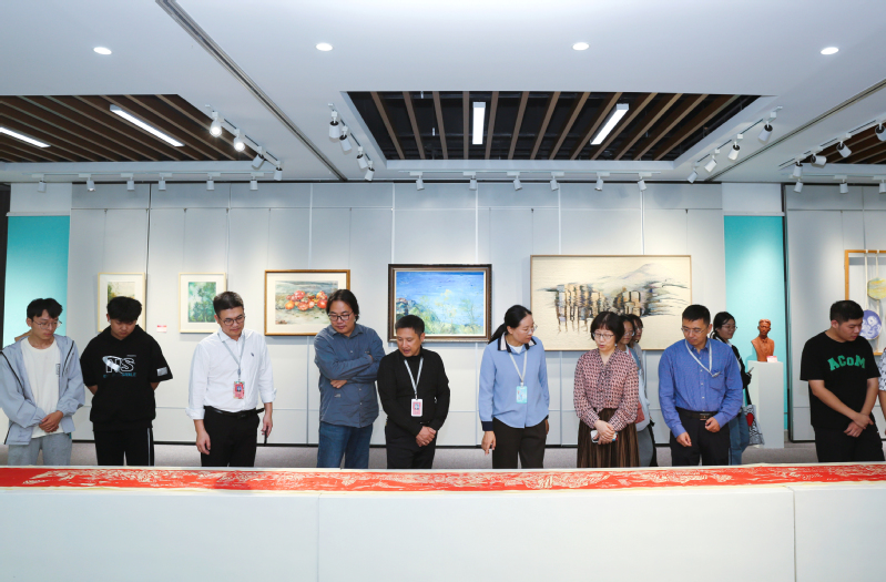 本次展览作为“强国复兴有我”主题宣传教育系列活动的重要组成部分,展览的作品涵盖了绘画、书法、雕塑、产品设计、平面设计等多种艺术形式,教师们以独特的视角和巧妙的构思,将优秀传统文化、教育教学及日常生活等元素融入作品中,用艺术的语言诠释了时代生活的多彩与美好。展览中的青绿画卷、水彩风景和海报招贴等作品,都充满了浓厚的艺术气息和深刻的文化内涵,引领着观众踏上了一段特别的视觉与心灵之旅。展览自10月17日起,持续至10月31日,吸引了全校师生的广泛关注与热情参与。