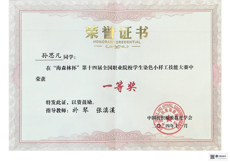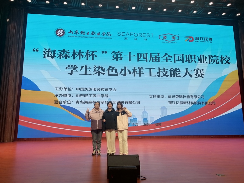 2024年11月15日至17日,“海森林杯”第十四届全国职业院校学生染色小样工技能大赛在山东轻工职业学院落下帷幕,智能纺织与材料学院於琴、冒亚红、张滇溪团队指导的学生团队喜获一等奖和优秀奖。