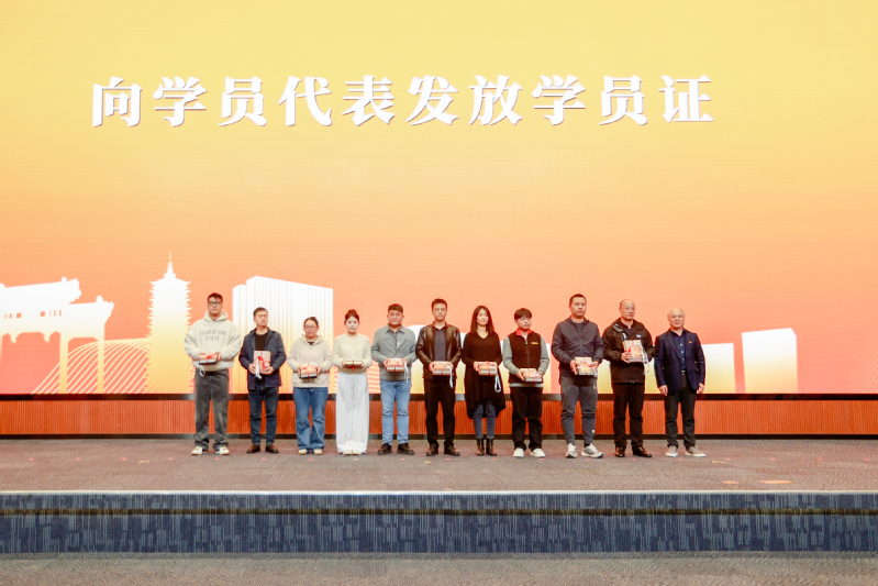 龙城经纬新质学院举行了开学典礼。智能纺织与材料学院党总支书记侯喜军详细介绍了学院的成立背景、办学目标、工作原则和主要任务,并表示学院将充分发挥产业链党委的桥梁作用,加强政府、学校、企业和行业之间的交流与合作,共创多赢格局。随后,市、区、学院和学会嘉宾共同为学院揭牌,标志着龙城经纬新质学院正式扬帆起航。吴访升向学员代表发放学员证,赠送资料包。