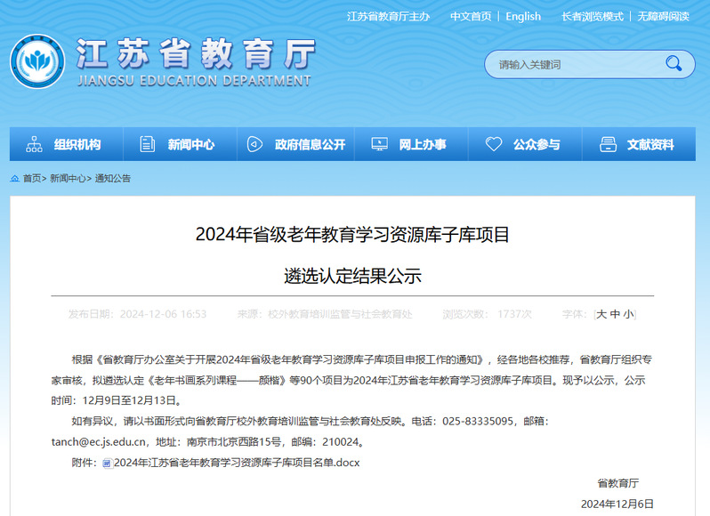 我校2个项目入选2024年省级老年教育学习资源库子库