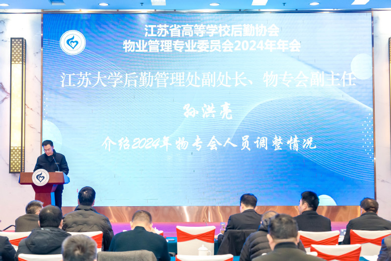 “物专会”副主任、江苏大学后勤管理处副处长孙洪亮宣读了江苏省高等学校后勤协会物业管理专业委员会主任、秘书长人员2024年调整情况。