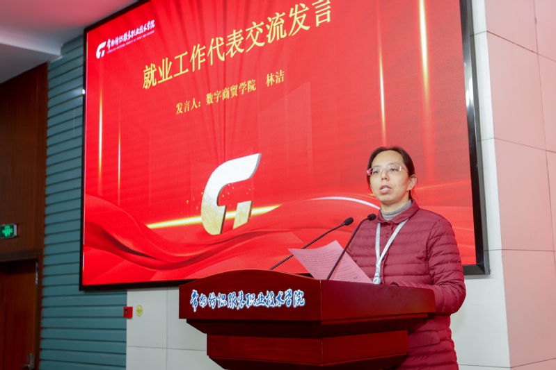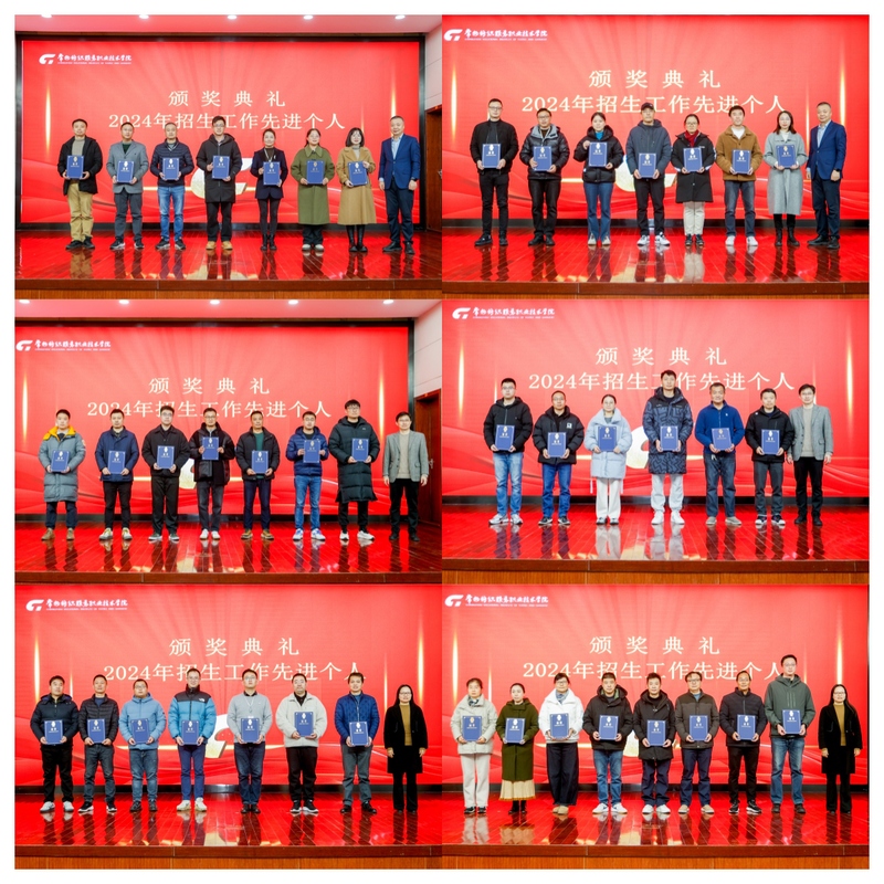党委副书记王顺明宣读了《关于表彰2024年招生工作先进集体、先进个人的决定》。党委副书记、校长洪霄,纪委书记林素琴,党委委员、组织部部长高江荣,党委委员、宣传部部长夏斌分别为9个先进集体、75名先进个人颁奖。随后,服装与时尚设计学院党总支副书记林继昌、创意设计学院党总支书记祝燕芳和数字商贸学院党总支书记林洁分别作为招生工作、先进集体,就业工作代表进行交流发言,为全体教职工提供了极具实操性与启发性的“招生就业工作宝典”。