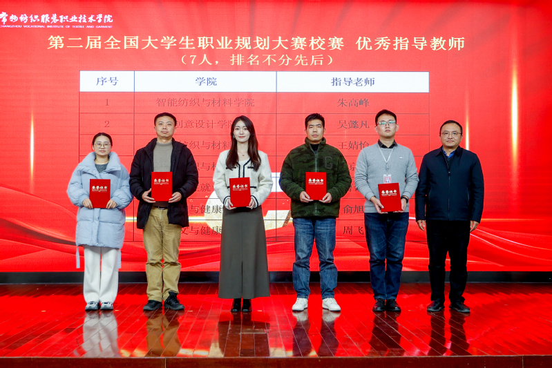 党委委员、副校长张文明、马昀,招生就业处处长高妍,教务处处长王一凡,学生处副处长李鹏分别为全国第二届职业规划大赛校内决赛的获奖集体、指导教师、获奖学生颁奖。