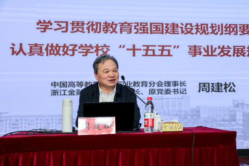 周建松教授围绕《学习贯彻教育强国建设规划纲要 认真做好学校“十五五”事业发展规划》《职教本科:艰辛探索与美好未来》作专题报告。他全面深入地剖析了《教育强国建设规划纲要》精神,从学校编制发展规划的基本理念,高职学校规划编制的具体分析,学校如何编好“十五五”规划等方面展开,明晰了学校“十五五”事业发展规划编制的努力方向和具体举措。梳理了职教本科从梦想、期许到试点的发展进程,深入阐释了稳步发展职业本科教育的政策与实践,职教本科教育的积极发展和高质量建设,切实抓好职业本科教育的专业规划与建设等方面内容。此次讲座让大家对教育强国的使命担当有了更深的认识,对“十五五”规划的编制方向有了更清晰的把握,为学校进一步推进各项事业发展提质增效提供了宝贵的理论和实践指导。