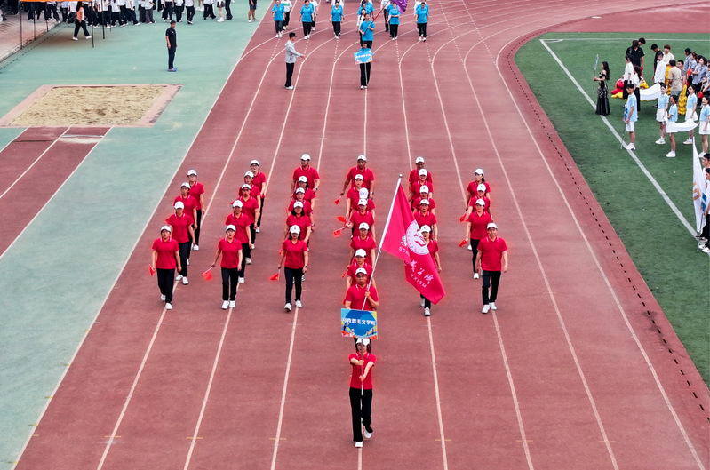 开幕式上,各代表队踏着《运动员进行曲》依次入场,身着彩妆展示出各具特色的专业风采,给观众留下了惊艳印象。党委副书记、校长洪霄致开幕辞,并宣布运动会开幕。他提出,学校体育是培养全面发展人才的重要途径,我校高度重视体育工作,积极推进体育教学改革,不断完善体育设施,广泛开展丰富多彩的体育活动,在提高学生身体素质、培养团队精神和竞争意识等方面取得显著成效。学校运动会的举办是对我校体育教学成果和师生精神风貌的全面检阅,也是师生展示自我、挑战自我、超越自我的重要平台,是推动学校高水平建设和高质量发展的内生动力!