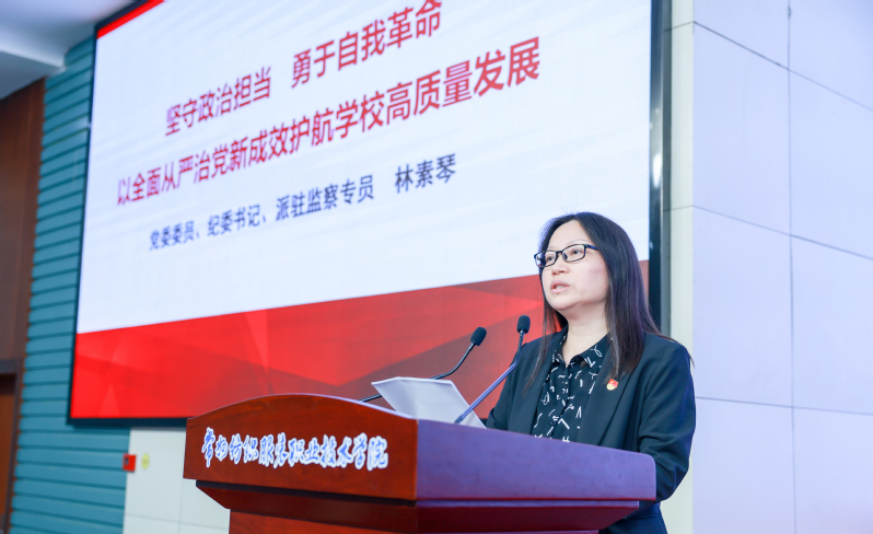 党委委员、纪委书记、派驻监察专员林素琴作了题为《坚守政治担当 勇于自我革命 以全面从严治党新成效护航学校高质量发展》的纪检监察工作报告。她全面回顾了2024年纪检监察工作,分析研判了当前形势和目前学校纪检监察工作存在的问题,并从六个“聚焦”方面部署了2025年学校纪检监察工作的重要任务。