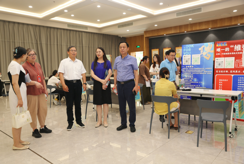为深入贯彻落实党的二十大精神和党中央、国务院关于促进高校毕业生就业的决策部署,进一步促进毕业生与优质企业的精准供需对接,创意设计学院于6月18日下午在图文信息楼领秀展厅成功举办了“优企进校 招才引智”2025年专场招聘会。此次招聘会吸引了28家企业踊跃参与,这些企业与学院的专业设置紧密相连,契合学生们的就业意向。学校党委副书记王顺明,党委委员、副校长张文明、张震宇,以及招就处、学工处、校企合作处等相关职能部门负责人亲临现场指导工作,与用人单位和毕业生进行了亲切交流。
