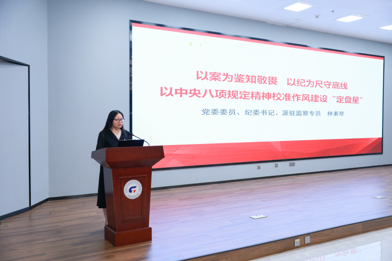 会上,学校党委委员、纪委书记、派驻监察专员林素琴作《以案为鉴知敬畏,以纪为尺守底线,以中央八项规定精神校准作风建设“定盘星”》警示教育报告。林素琴重点围绕“违规吃喝”“公款旅游以及违规接受管理和服务对象等旅游活动安排”“违规收送名贵特产和礼品礼金”等方面的典型案例进行了政策解读,教育引导全体干部以案为鉴,切实增强纪律规矩意识。