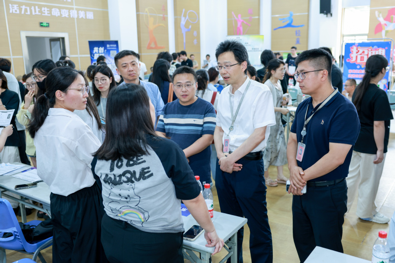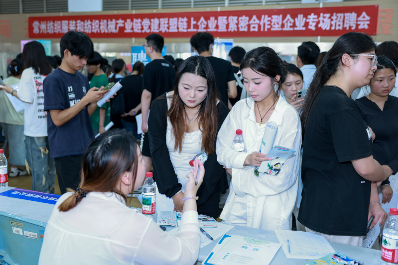为深入贯彻习近平总书记关于高校毕业生就业工作的重要指示精神,认真落实江苏省和学校党委关于毕业生就业工作的决策部署,深入推进产教合作,促进人才链与产业链精准对接。智能纺织与材料学院于6月25日下午在体育馆举办常州纺织服装和纺织机械产业链党建联盟链上企业暨紧密合作型企业专场招聘会。校党委副书记王顺明、招生就业处处长高妍、副处长蒋云松深入招聘会进行指导交流。智能纺织与材料学院全体党政领导、党支部书记、各专业老师及全体辅导员全程参与,共同为学生实习就业保驾护航。