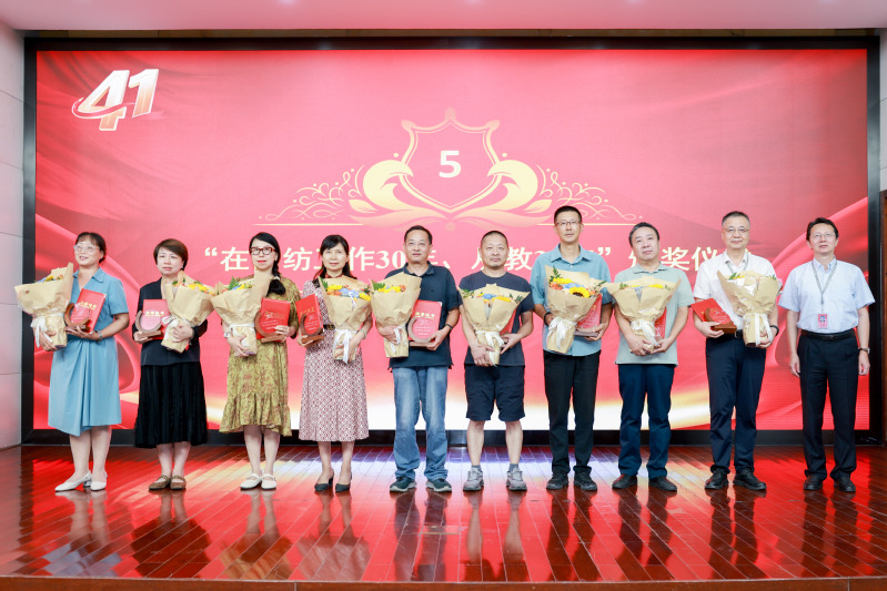 党委副书记、校长洪霄为“在常纺工作30年、从教30年”教职工颁奖